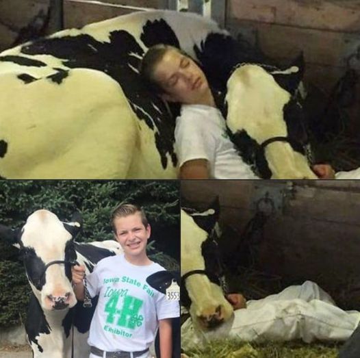 The two had spent the last few months preparing for the competition and formed a very close bond while doing so. And the picture of them napping together in the barn sums up their heartwarming friendship. Just a boy and his cow.