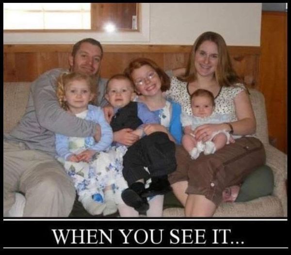 Take a look at this photo. At first glace, it looks totally normal, just a couple and their kids grinning from ear to ear.
