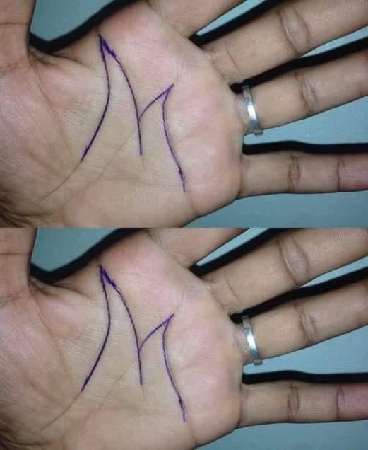 If someone has a M on both hands, it indicates that they are adaptive, versatile, and able to face obstacles head-on. This symbol on both hands indicates a successful and well-rounded life for the bearer.