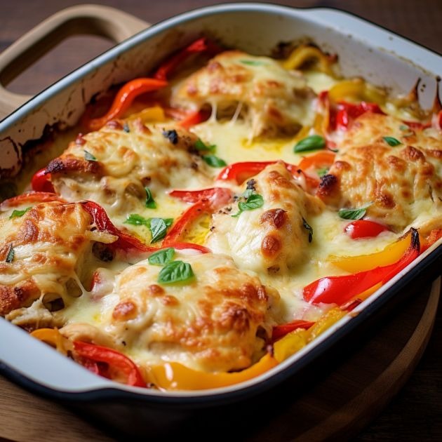 Savor the harmonious blend of succulent chicken, aromatic herbs, and vibrant bell peppers in this delightful casserole. Crowned with a layer of melted cheese, this dish is sure to win over hearts at any dinner table. Whether it’s a regular weeknight or a special occasion, this comforting meal is always a hit.