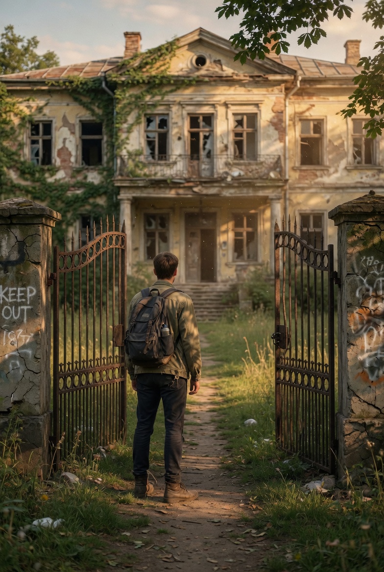 That same night, he walked to the estate. It stood like a broken skeleton of stone, covered in vines and moss. The windows looked like empty eyes watching the darkness.