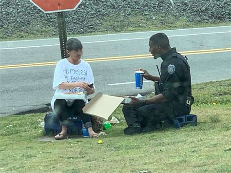 For the past nine years of having been with the Goldsboro Police Department in North Carolina, Officer Michael Rivers has come to know the faces of the homeless in his community. But on Wednesday, he came upon a homeless woman he had never seen before. And her shirt caught his eye. It read, “Homeless. The fastest way of becoming a nobody.”
